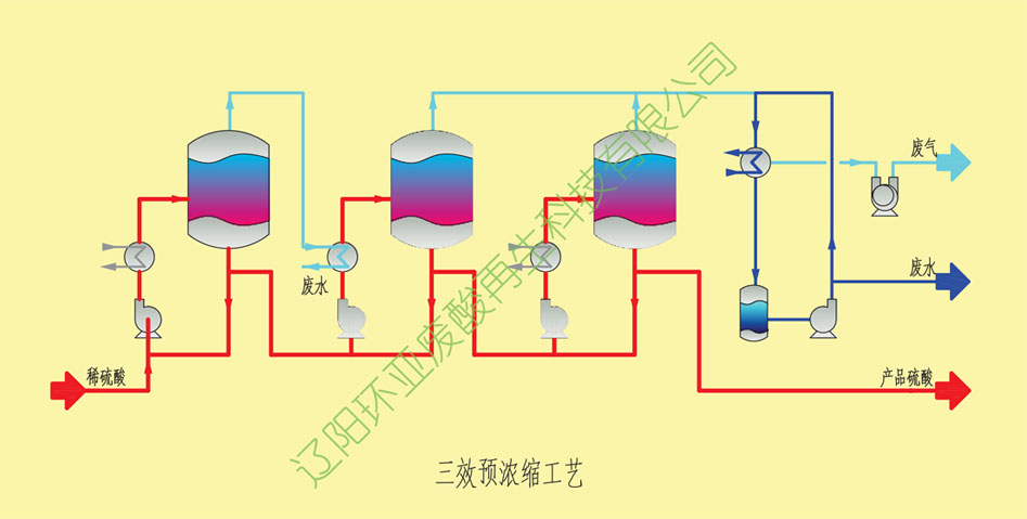 预浓缩可在常压或是在真空下操作,根据废酸的浓度和杂质的不同可采用不同材质和类型的加热器。多效浓缩无疑会节约能源,但由于多效浓缩将提高设备的投资费用,我们一般不推荐采用三效以上的预浓缩工艺。